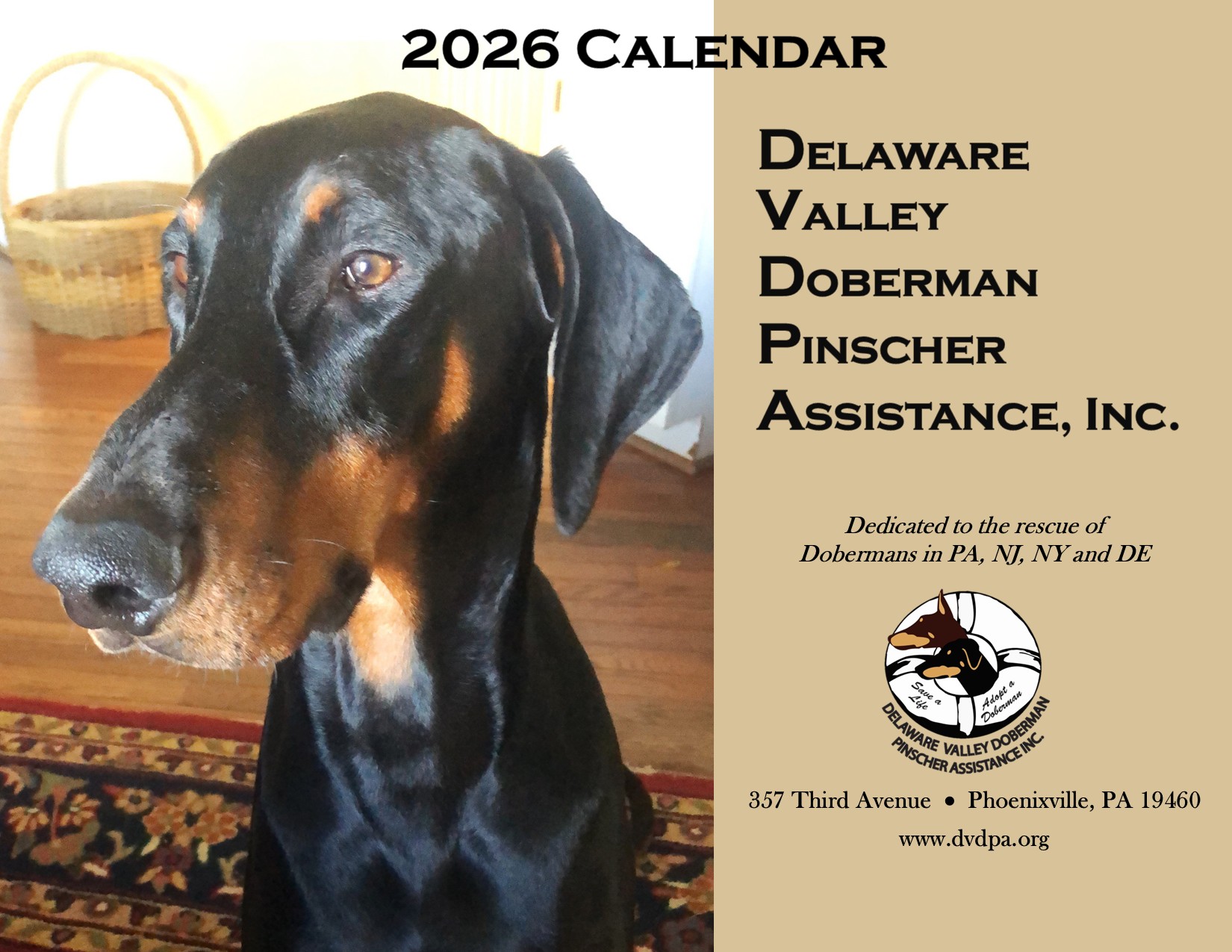 Pre-order your 2026 DVDPA Calendar today and enjoy a full year of beautiful Doberman photos! This gorgeous calendar makes a great gift and proceeds support DVDPA’s incredible work saving and changing lives!
